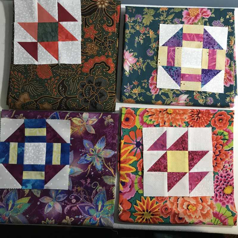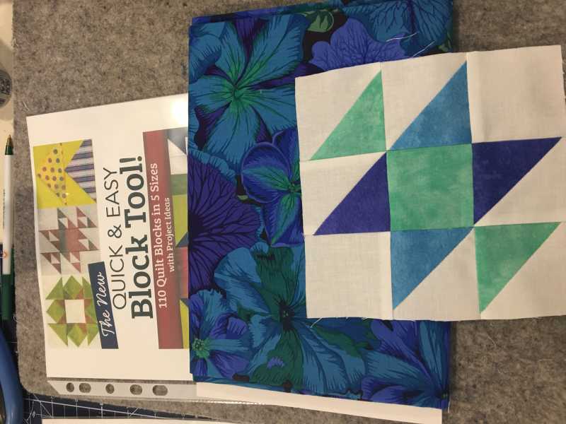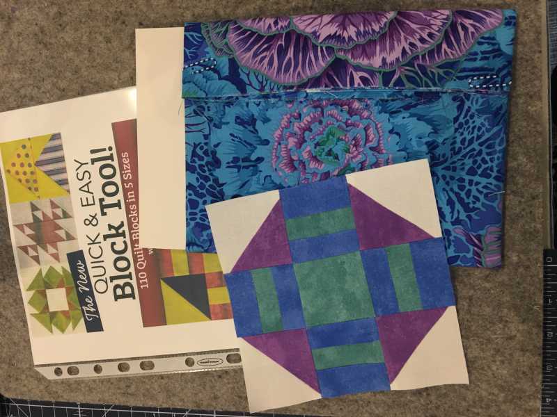 I have three books on blocks: Around the Block with Judy Hopkins, Around the Block Again by Judy Hopkins, and The New Ladies' Art Company Quick & Easy Block Tool..I had decided I didn't need to order the book Alex is using, because surely with these three books, all giving multiple sizes, just like the book Alex is using, I would be fine. And if I wasn't, I would just pick another block.