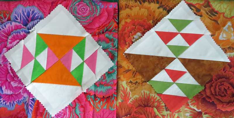 Finn2016 asked about Millstone block, page 56. The math is accurate. There are many seams in it, so that is the challenge. The pinwheel in the middle is 4" finished, 4.5" unfinished. The 4 sets of border triangles, BCB. will fit the 4" center--there will be dog ears sticking out on both sides of the long seam. Precise piecing is required to get this one sewn together accurately.