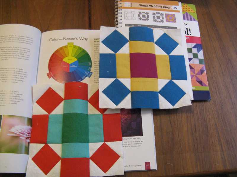 I have wondered why the traditional holiday greens and reds changed in recent years to a lighter turquoise green and a more orange red. Somebody must have pulled out the color wheel and said, "I think we should consider a different split complementary color way." Now I know why it works.