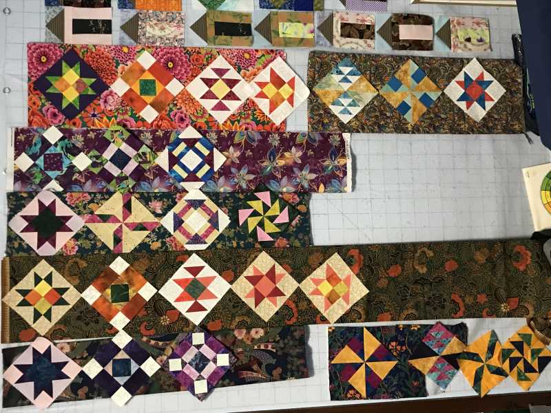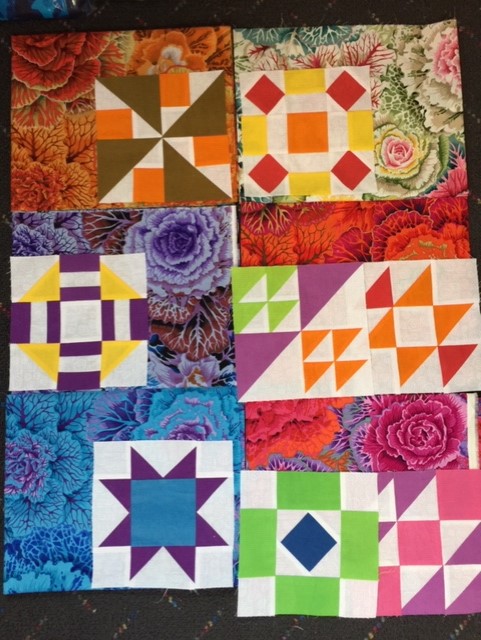 Both the star belly using the shoo fly block, and the Star of Hope... love them. Learning so much about color, and precision. Really great to slow down and be more careful about cutting and sewing and pressing - all of it. I also decided to line up the blocks with the Kaffe fabric to see how they were looking and what I may need to work on for balance and color. I also need to get some sort of design wall up. I've always used the bed in the guest room, or the floor. My sewing room which I love, is in the attick and has sloping ceilings so I only have half walls... no walls to put up a larger design wall. working on ideas though, I have always wanted one and just kept putting it off.