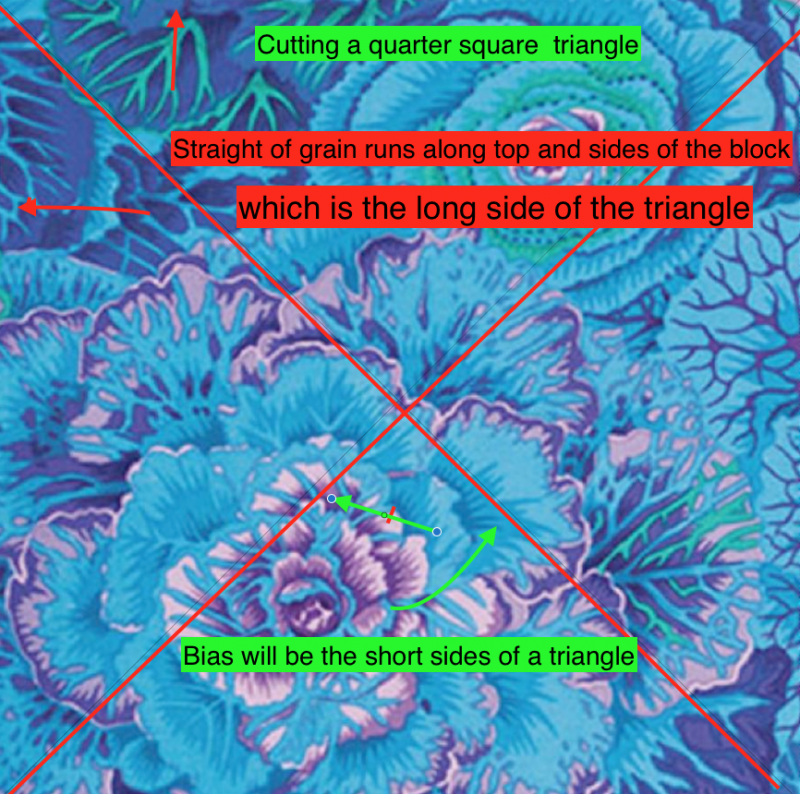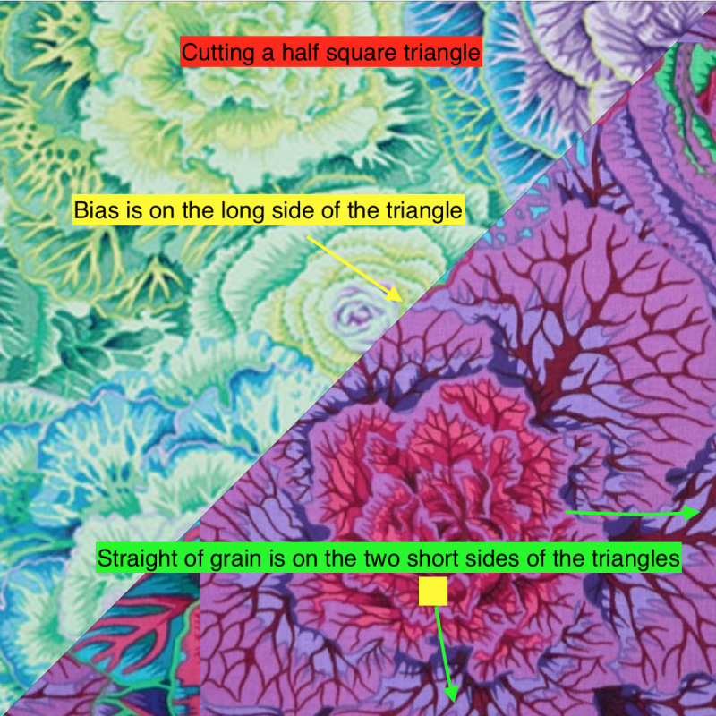 Confusion on the quarter square and half square triangles and where the stretchy Bias is....