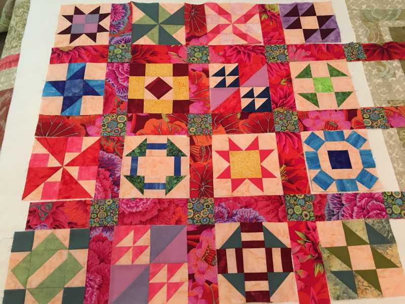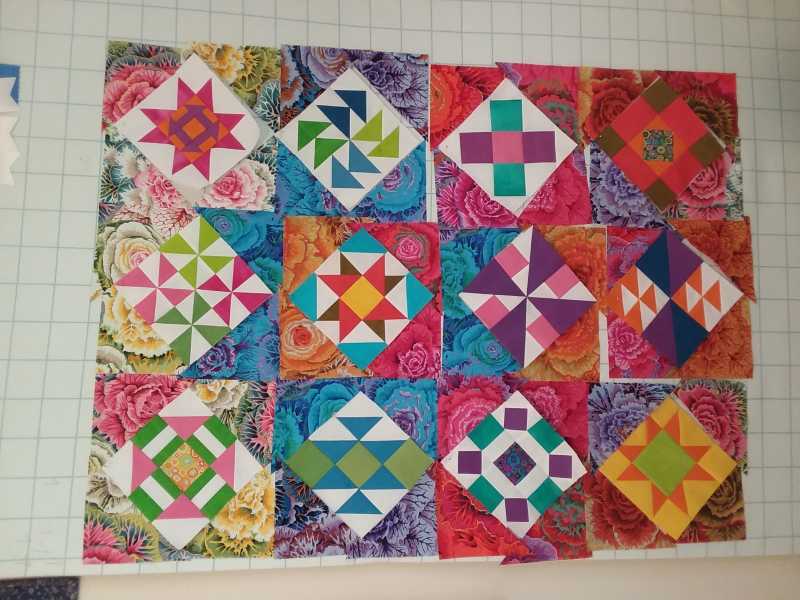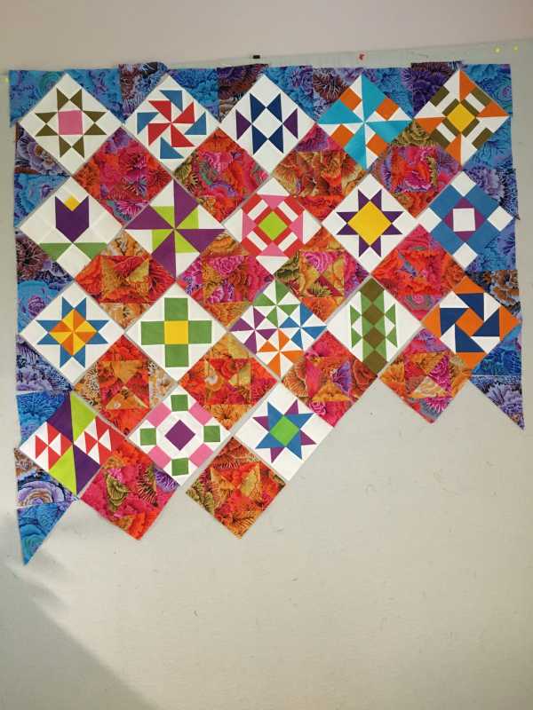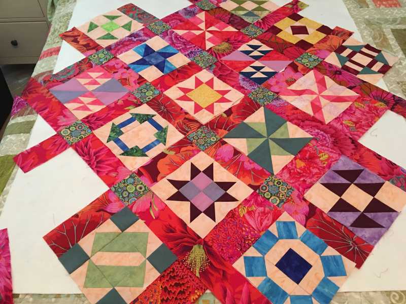 You all have inspired! House cleaning avoidance today by playing with layout. (Nearby Home Depot is out of 1” foam core board, so using my “design bed” until it’s back in stock.) Straight set or on point? I am using stash and have a Kaffe jelly roll, which I will cut and mix up throughout. Red and green are my favorite colors, using anything blue is a challenge. More blocks yet to make. This has been a humbling quilt, striving for perfection is one thing, achieving is another! Thank you Alex, Captain John, and Barbara for so generously giving us your time. Stay safe. -terri, Cape Coral FL