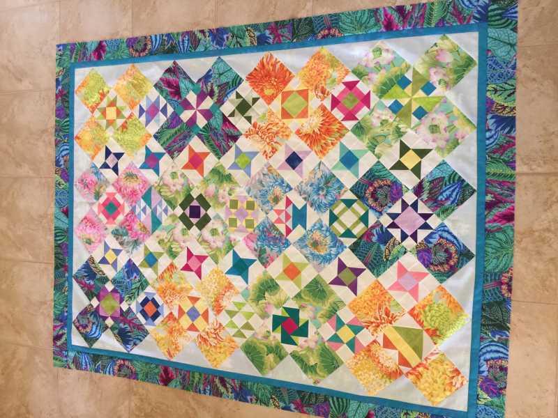 Beautiful quiltOriginally posted by "MickyF" post=149198I had SO many variations of this quilt...but when I started singing "Let It Go Let It Go", I realized it was time to stop experimenting and sew. I now appreciate ALL the decision making that goes into a design. The left-over fabrics and blocks will be arranged on the backside. I loved this process...frustrating but also very rewarding. Thank you, Alex!!!
