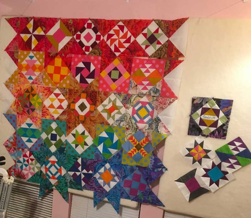 I have spent the weekend working on this amazing quilt. I decided on this block setting. Going to extend the Star points into the border. The white HSTs are on the outer edge. Thinking about a possible further border. Can’t decide yet. I’ll let the quilt tell me.