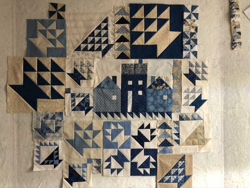 [quote="karonray" post=150343]I made the houses in a class at Asilomar with Edyta Sytar and they have been floating around my creation space for many years. Planning a blue quilt using many of Edyta's fabrics seems like a perfect place to give the houses a home. I don't want to sew anything together yet because if I introduce another color or concept I want to be able to rearrange. I have found that as I introduce things my concept of the finished quilt changes.