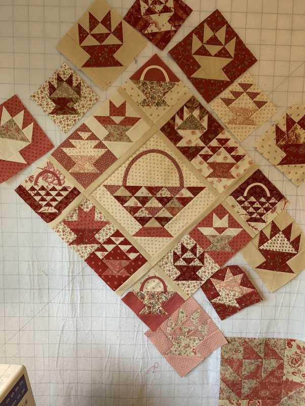 Would LOVE some input about what I should continue with. I have a 12" Cherry basket in the making, It's the same fabrics (roughly) as in the basket with the red dot.