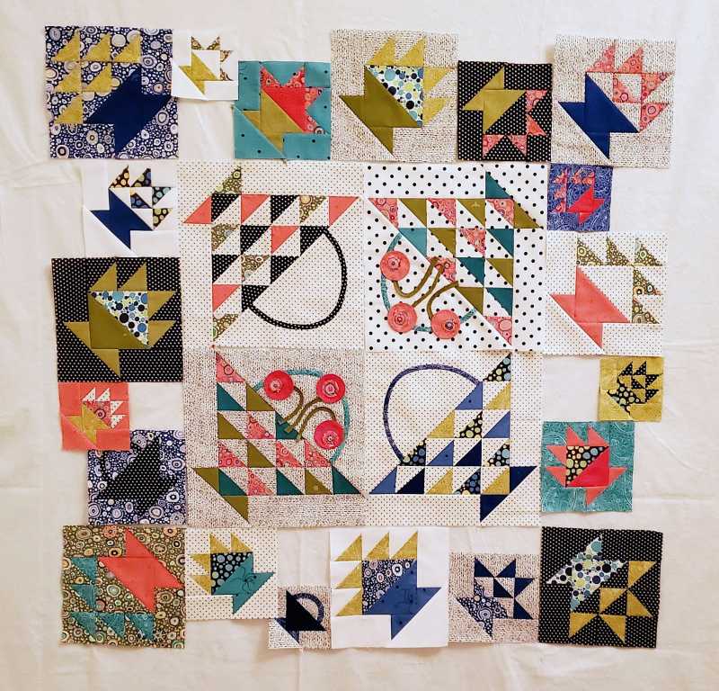 Finally Done! Now, off to the quilters. This one fought me every step of the way: 9” star points, 8” and 12” baskets was my first hurdle. I solved this by needle turned appliqué on the two outside edges of the baskets. The final trial was the scalloped appliqué border. It took me 5 tries to get it right, unpicking each time! What a pain! If it wasn’t for Alex saying she couldn’t wait to see how I finished this, I probably would have done something much simpler. Thanks for the challenge (and motivation), Alex! Can’t wait for the next project! -Kami