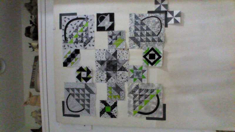 georgiaquilt, love the green! And I like the placement. One idea that might help you get to a more random placement is to make odd numbers of blocks in each size. Also, think about imagining a 9 patch grid on your design wall and fill in one grid at a time, with the goal to make each grid different. Or keep it the way that it is. It is beautiful!