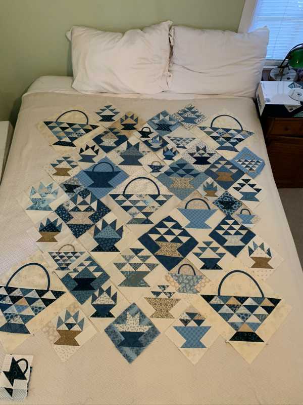 Here is a picture of the blue basket quilt I've been working on. I'm learning so much--thanks for all the tips and ideas that are shared in your youtube live. I'm going to do a pieced backing and use the extra baskets i made there. Not sure how I'm going to handle the borders yet, I know I want something simple.