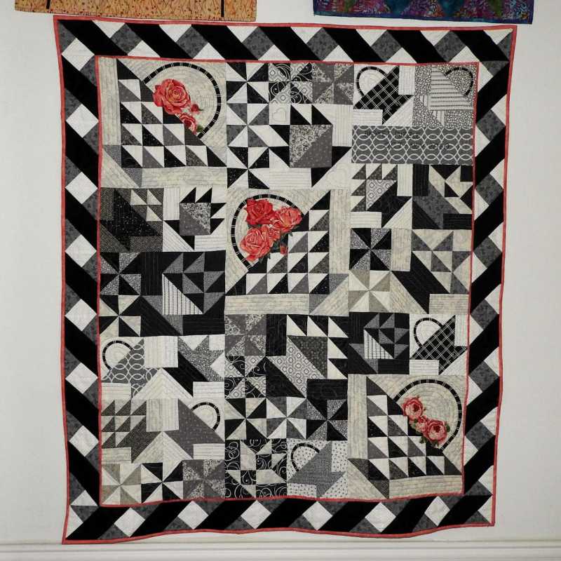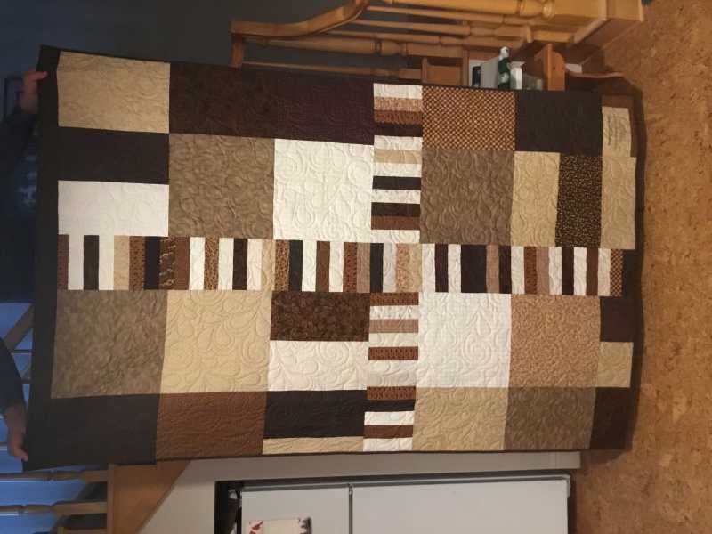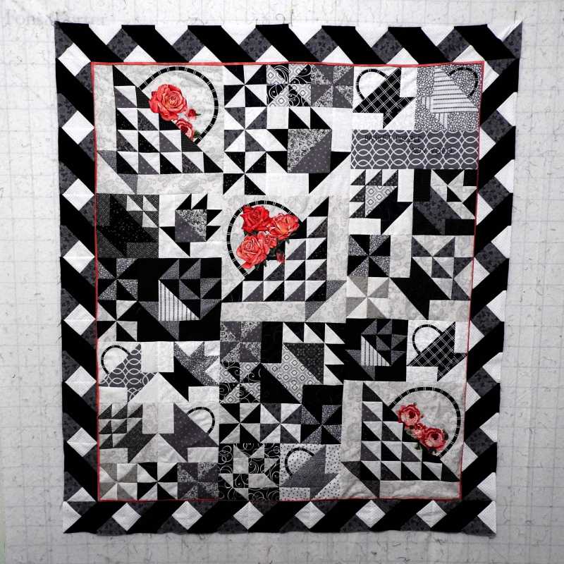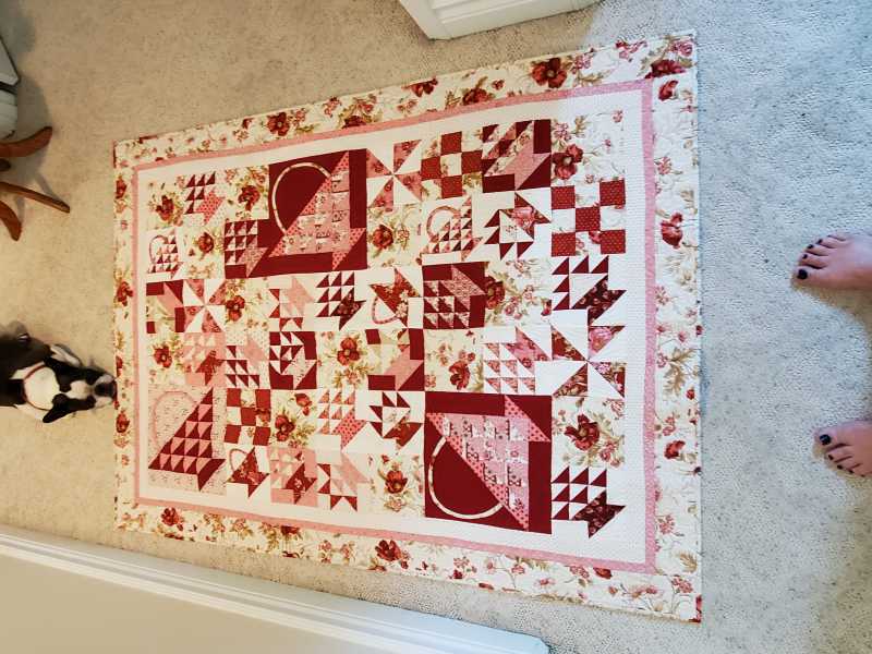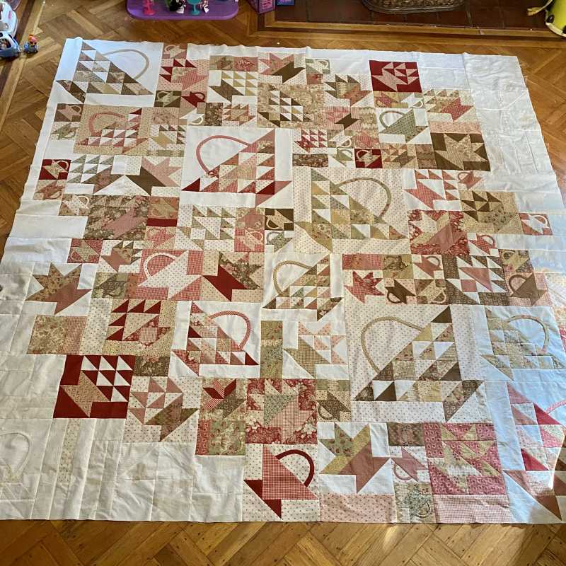 I included the negative space in the upper right and lower left to add a somewhat modern element to this otherwise very traditional (for me!) quilt. The top is 86” x 92”; everything was cut on my Accuquilt GO die cutter and my blocks are 18”, 12”, 9”, 6”, and 4.5”