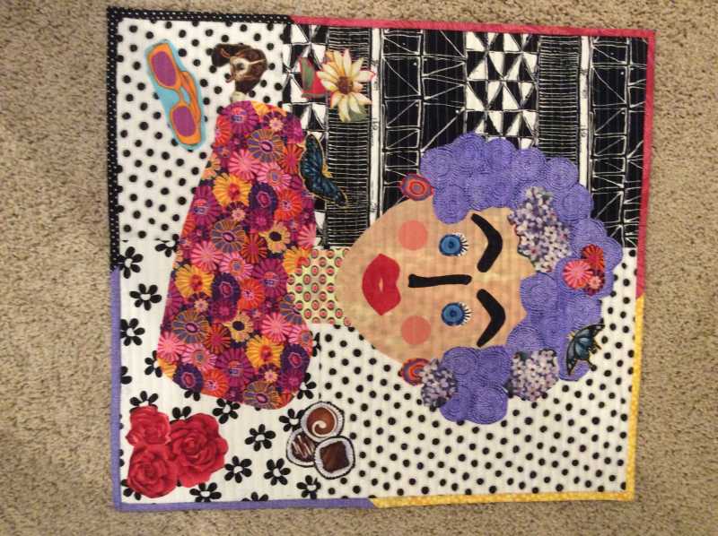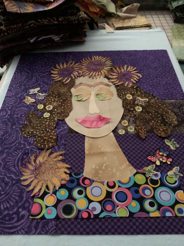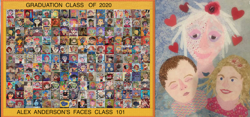 I had to make a Faces quilt. I used a test quilted piece when I was learning how to use the Sew Kind of Wonderful mini curve ruler. I also belong to a beading group (Toronto Bead Society) so I used this background to add my face and the beads from our Bag of Bead Challenge which is due in February 2021 but I finished it early! I loved seeing all the Faces that have been displayed and wanted to get into the Class of 2020.