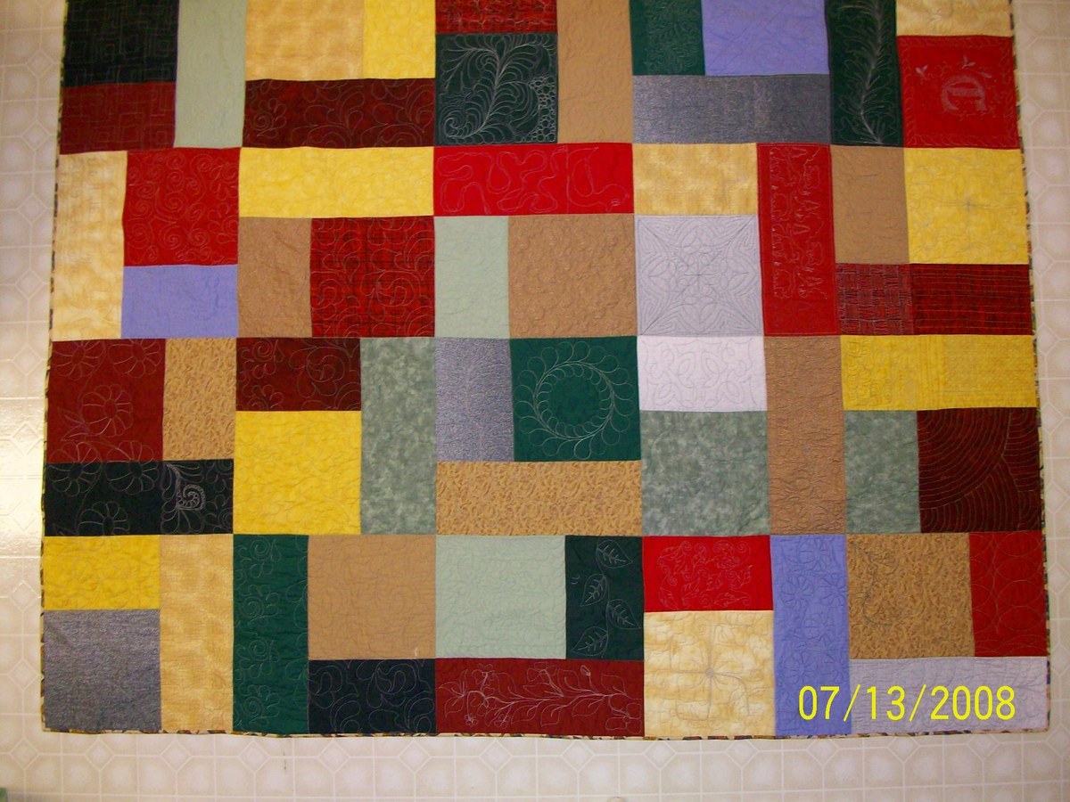 If you are just interested in practicing machine quilting, it would probably be easier to just divide the quilt into manageable units and quilt each one with a different motif. The "turning twenty" quilts are great for this kind of practice. Just assemble the quilt top and quilt each block differently.