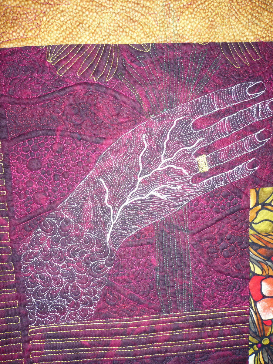 ops: From the backside of the quilt it looks beautiful! I now remember when you showed the hand with the vein and the paisley in the sleeve... I guess that's what happens to memory when you're in quilt overload... :lol: :roll: