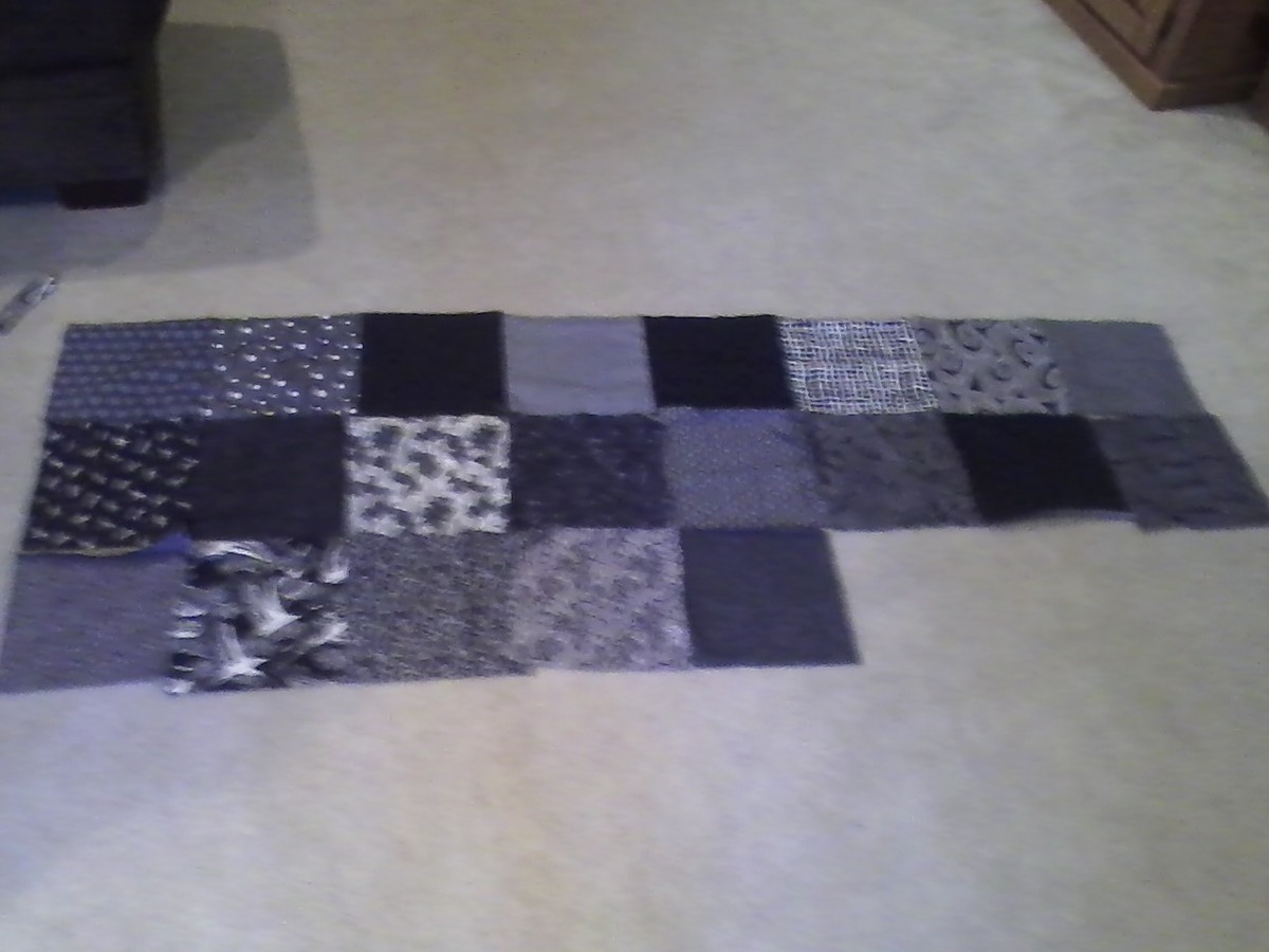 My first row looks lame and the measurements are off. My husband says my son may not want it and that if no one needs a quilt in this family what is the point of making quilts. My bad. At least I put the 12 fat quarters aside to buy tomorrow during fat quarter sale Monday.
