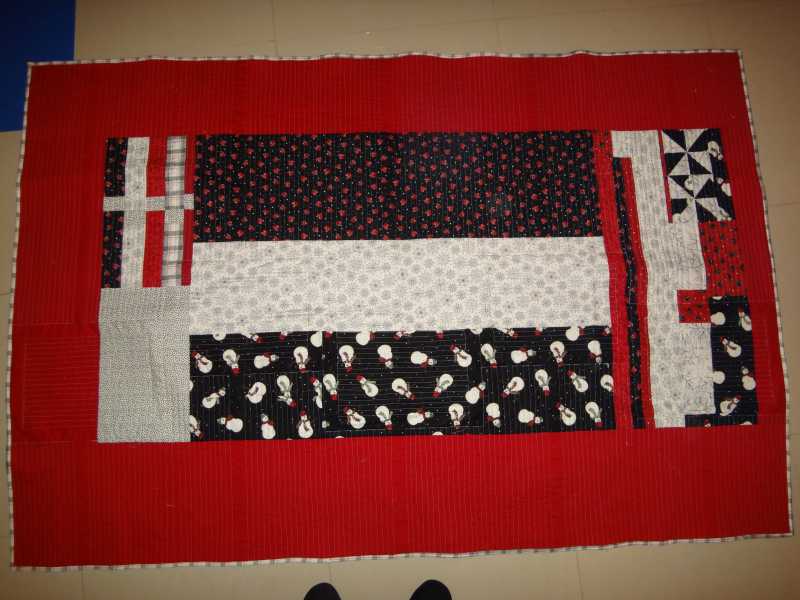 I was just looking at Rosemary's miniature once more and had an idea re posting picts of the small stuff. My daughter is a geologist and when they take picts of rock specimens they often lay a pen in the pict for size reference. With rocks you really can't tell if you are looking at a small stone or a boulder. I think quilters of miniatures should lay a thimble in the picture for reference. Just an idea. It would give a lot of info without any text. A picture is worth a thousand words….