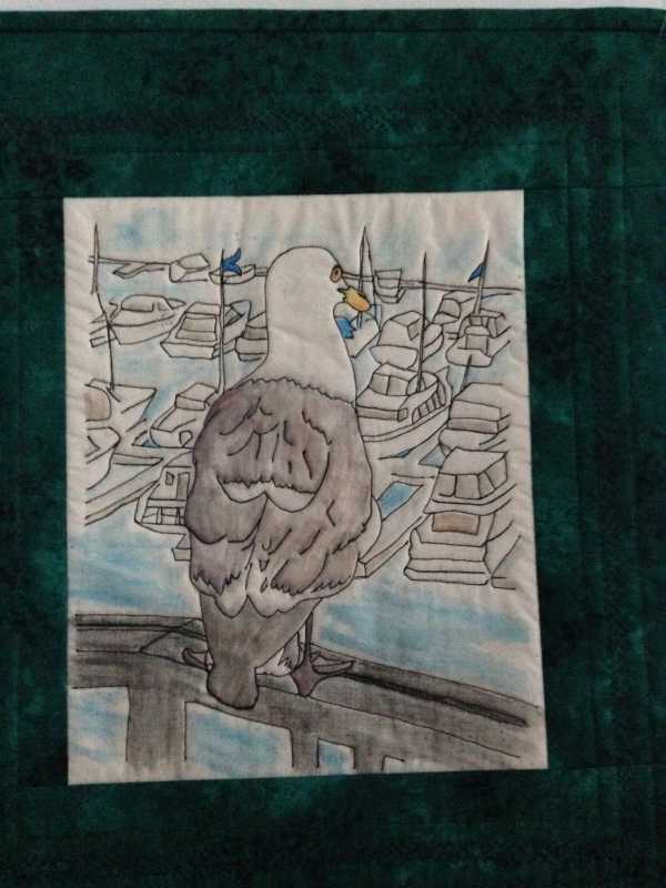 Like Ritzy, I got to do this New Year thing my own way. Must say all the suggestions help me devise what that is. Often when I travel I become inspired to make a small quilt reminiscent of the trip. It seldom happens. I just returned from a trip and made up my mind to do one and not get stuck somewhere waiting for skills to improve or learn a new one necessary for completion. Here is my "Bird's Eye View of San Diego Marina".