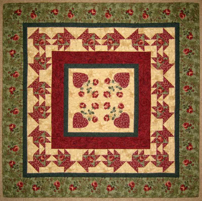 I'm still spending a lot of time helping my DD. She is improving slowly but has a long way to go. This week I started cleaning out her hobby/guest room which was mostly a storage room. The boxes are now at my house and I will take them back one at a time when she starts feeling like sorting through them. We realized it has been 6 years since she's done any sewing. No wonder she is so stressed! Next week she wants me to help her set up the machine and refresh her memory on how to use it. She has a quilt already started from 6 years ago to finish and the fabric for 2 more that have been at my house for awhile. Hopefully she will get her energy and joy back soon. Now she has a place to hang the wall hanging I made and hand quilted 12 years ago out of the leftover fabric from her wedding quilt. There are no stitches in the mitered binding corners on this quilt either. It was made before I knew that was what you were supposed to do.