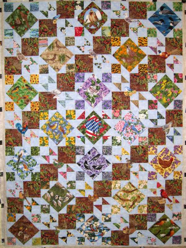 And to help relieve my stress I've decided to let someone else quilt the 6 large quilts that are still waiting because they need custom quilted and I don't have time right now. This is my State Birds & Flowers quilt blocks arranged and ready to sew together, started 11 years ago. I'm hoping to finish it this year but it will not be hand quilted as originally planned.
