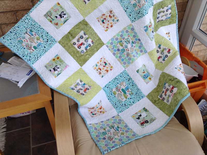 Over the years I've made quite a few baby quilts for colleagues and I thought when I retired I could concentrate on picture quilts but then I was asked to make another for an ex colleagues grandson to be