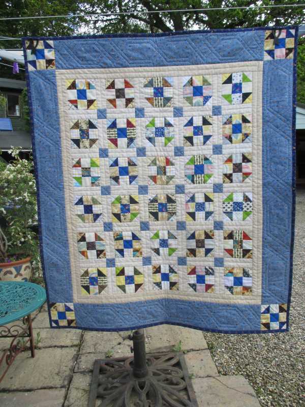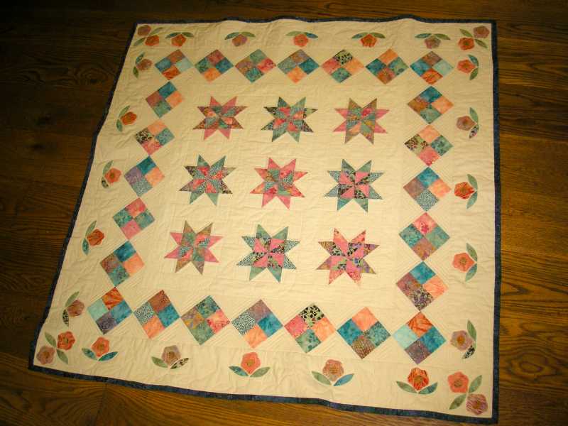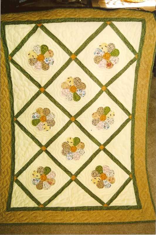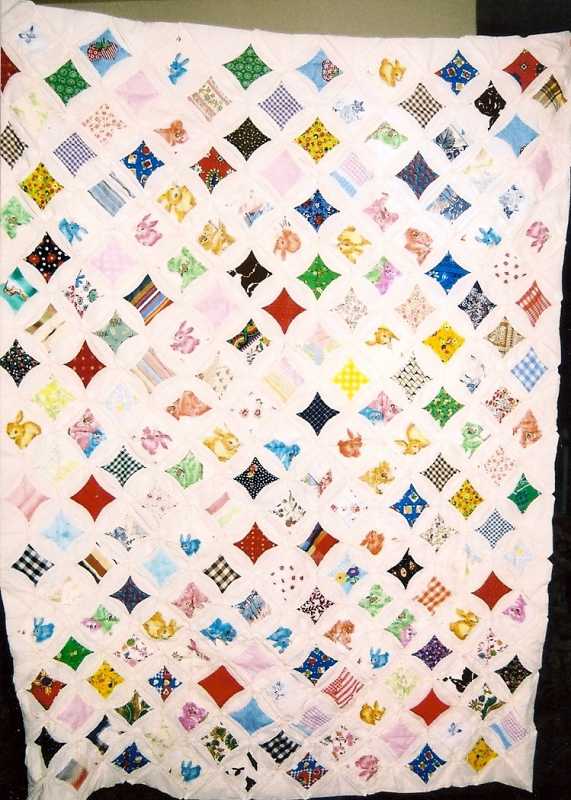 I am enjoying all the quilts on this conversation! Here is one of my baby quilts, for my grandson. In addition to his initial, it has his two brothers' initials, their cat, and their sisters named quilted on it. (You can't see it, don't look.) She died of SIDS at 9 weeks. As you can see, I like to experiment! The other brothers' quilts (another was born since) are on my profile.