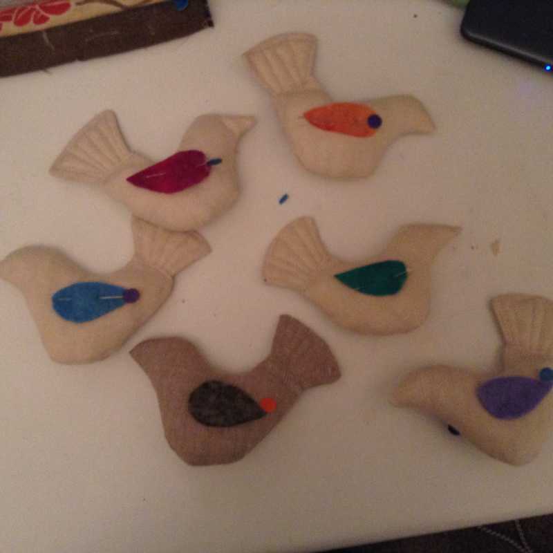 What are your little birds made of? They look soft and warm, so I'm thinking they are wool. Do be sure and show us how you embellish them.