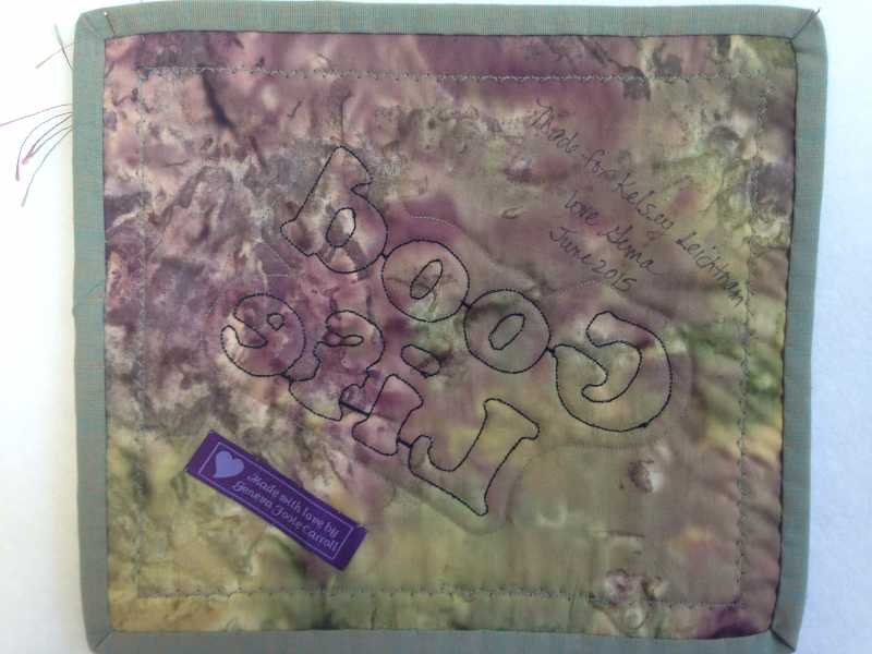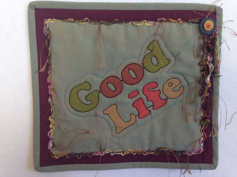 Here is a picture of a small art quilt I made for a friend. Her brother died suddenly at the age of 20 about 4 years ago. His favorite song was "Good Life", so I made this using scraps from another quilt I just finished.