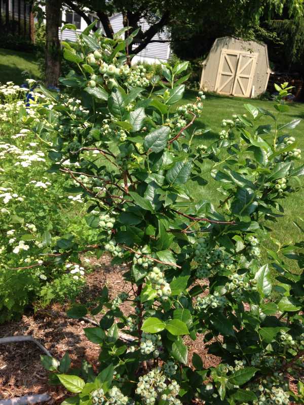 Next week the blueberries will start to ripen. They are loaded. I have to find stakes to support the branches they are so heavy with fruit.