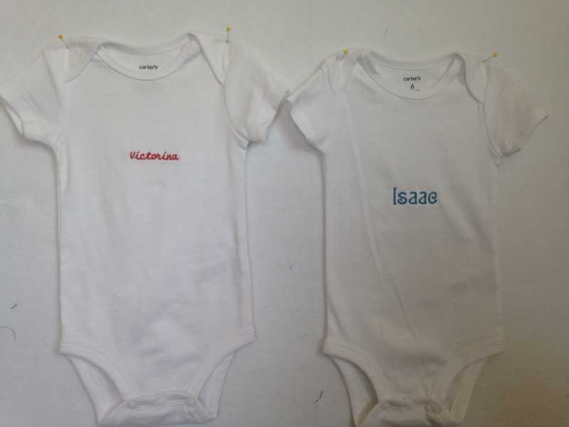 First I embroidered names of 2 new babies on onesies. These should be so simple, but take quite a bit of time trying to get the embroidery in the center and straight. My husband helps me. It's a pain because of the knit fabric stretching, the back of the onesie is always in the wrong place and it's so small! I had to make Victorina's name much smaller due to the number of letters and the size of the hoop that would fit the onesie. I've decided all future grandchildren will have only 4 letters in their name! I tell the parents that the onesie is in case they forget who their baby is!