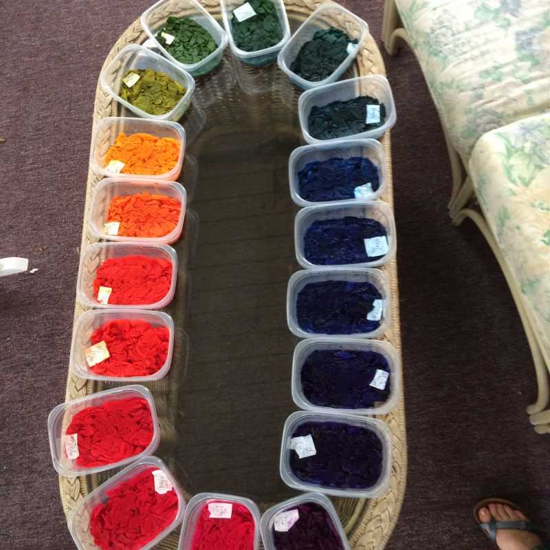 I have been super busy! im working on dyeing a 30 step color wheel and 36 more pieces that combine all of the primaries at varying degrees for some unique colors. I did 18 steps with generous fat quarters, and the rest in generous fat eighths. The first 18 pieces are done batching, they were rinsed, soaked for 3 hours in ice water, and rinsed again. Then they went into a hot water soak for at least 12 hours! Sometime tomorrow morning, I can check on them. The other 48 are sitting in their little cups in a picnic cooler, with some very hot water in the bottom to keep them very warm over the next 24 hours.