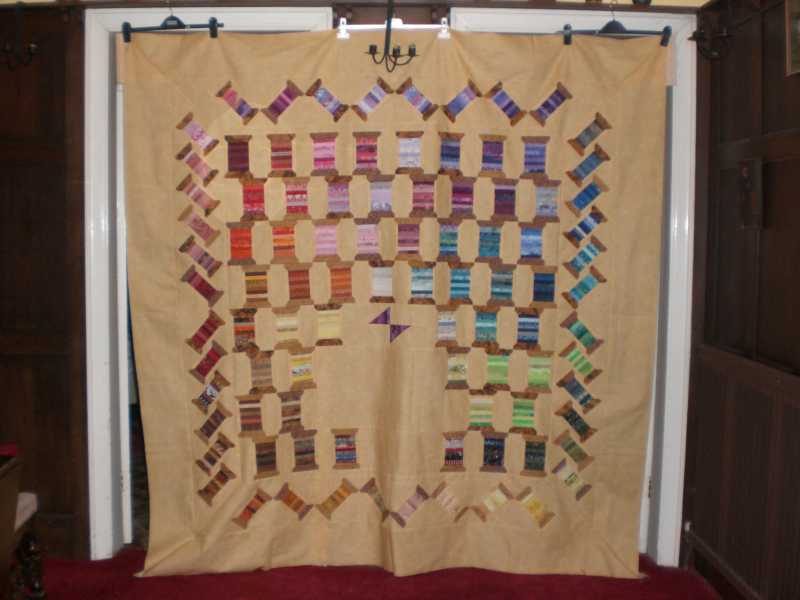 Luanne - Wot Rott was Winding on the Reels of Tangled Threads. I fell in love with Edyta Sitar's Reel quilt and thought that the best way to get lots of different coloured cotton reels was to do a swap for them. Originally I was going to do it on my own, but Lorna kindly volunteered to assist as she had a military address on her posting her in Britain we were able to save a lot on postage for the American contingent. There was also joiners from Canada, Australia, Tasmania, Netherlands, Switzerland and Ireland. And was a huge amount of fun, especially on the weekend that Lorna & Roger came up so that we could collate all the blocks together.