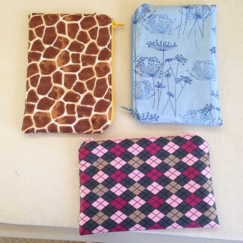 While visiting our kids and grands in New Jersey last weekend my sweet dau-in-law mentioned how much she enjoyed and used a little zip bag I had made for her in 2011. I told her when we go to JoAnn's to pick out the girl's soccer trophy fabric (more on that later) she should pick out fat quarters for me to make her some more bags. She had fun and so did I! I finished them today. They are about 7 1/2" by 5". I so like to make things for people when I know they really want/like them.
