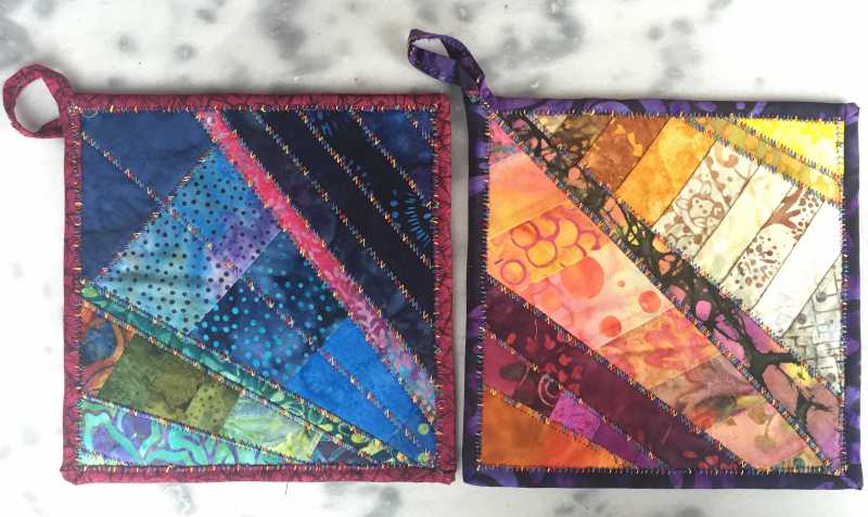 Went to my friend Claudias this afternoon, combined brthday-, Baby welcome - and new home party... As she already received the baby-prezzie in hospital, b-day prezzie at the office, I made what every new home needs, a pair of pot holders... ( if they like them they can use & show them in the kitchen, and if they're not their style, they can be hidden in a drawer and taken out when needed