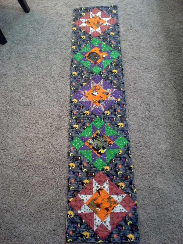My Halloween Table Runner (before I put the binding on, but after I quilted it)...