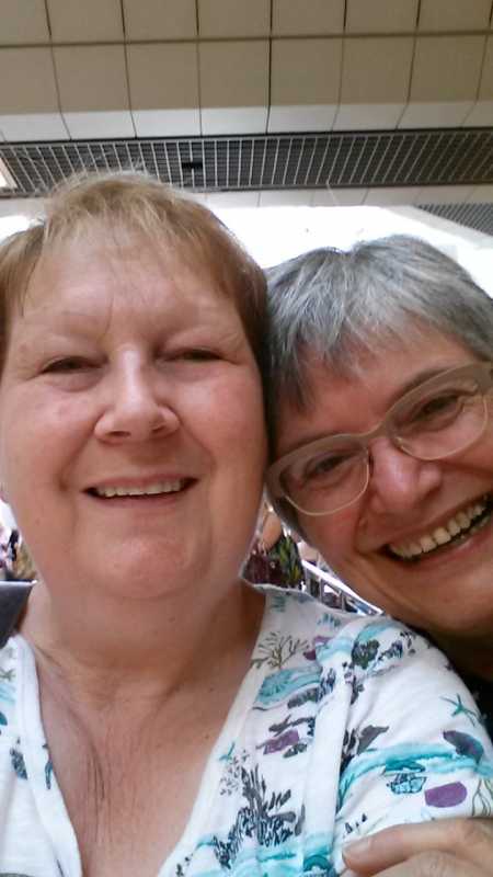 I saw your lovely quilt here it is with my friend Jane, I don't know what she's laughing at