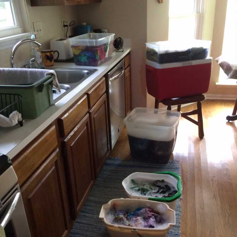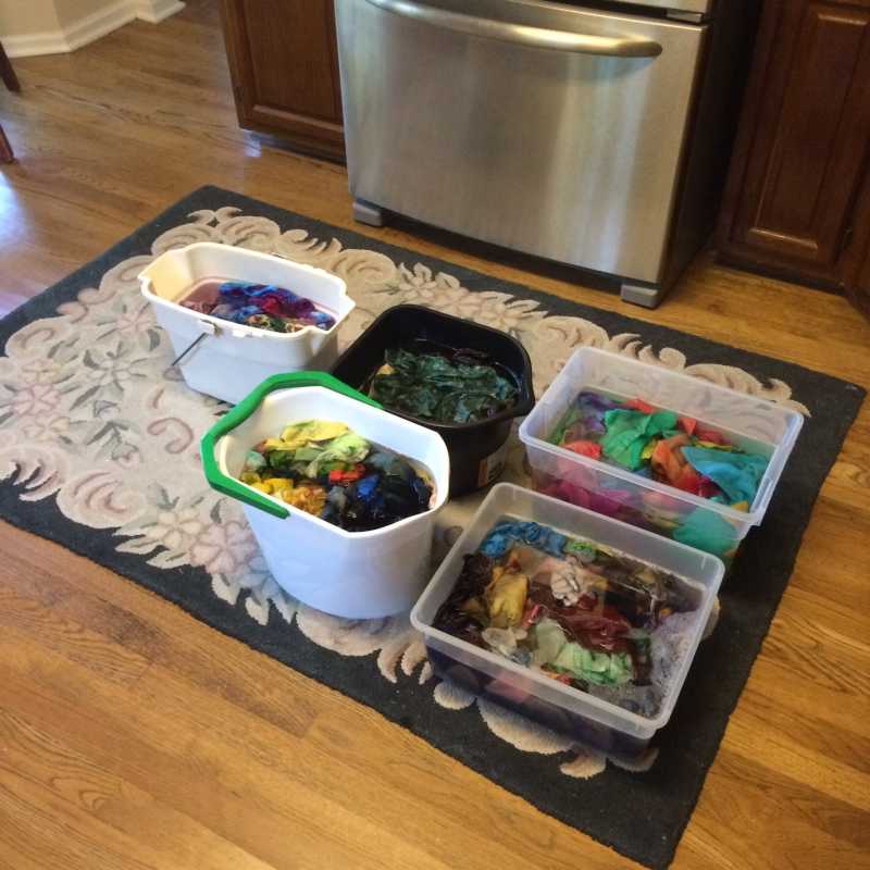 I am surprised to see the different colored fabrics soaking together. I would be afraid to do that for fear they would stain each other - like a direct dye.