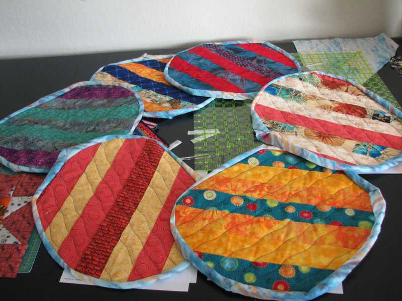 I made my first ever continuous bias binding, to bind the round place mats, and got that sewn onto the fronts of half of the placemats, and need to make another bit of binding to do the rest (I knew I would have to do it in 2 batches, and the fabric is marked and ready to go, just need to do it). I will work on sewing the bindings around to the back as I watch TV and stuff; these are a no-rush project, just for me, to work on between other stuff.