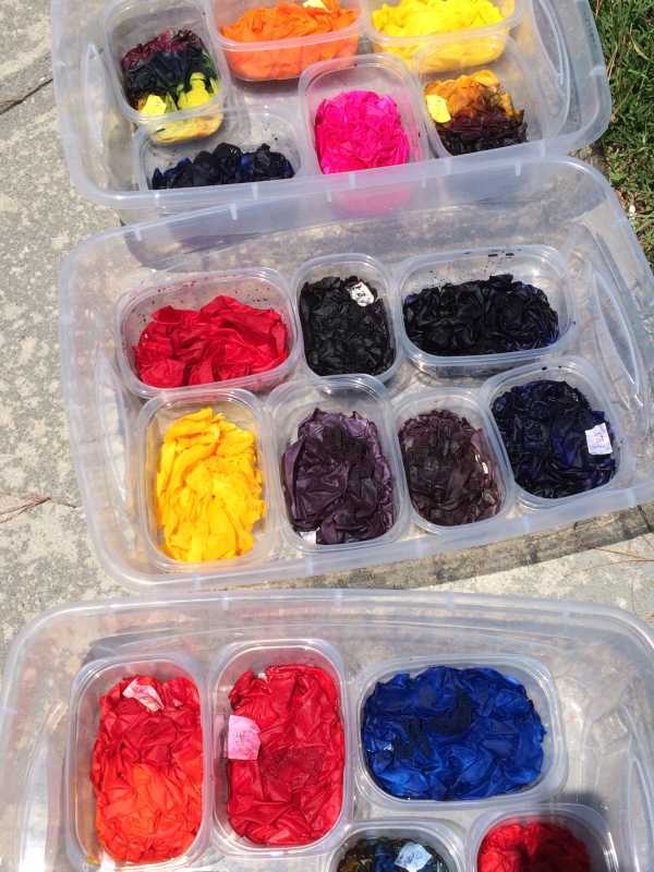 I just finished getting dye onto a batch of fat quarters. They are basking in the sunshine. I am out of many of my favorite colors now,,, I see an order happening very soon!