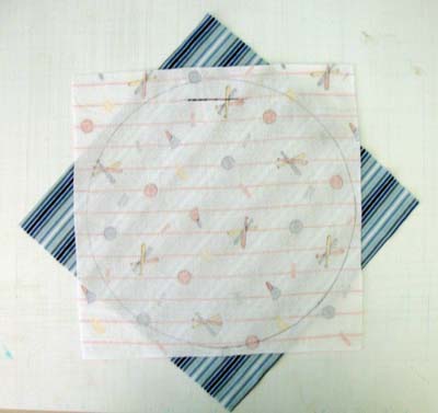 Cut squares an inch larger than the circumference of the circle size you are working with. Place fabrics right sides together. Draw your circle on one of the fabrics and stitch on that line. I reduce my stitch length for this, particularly if you are doing a smaller circle it helps to make an even curve. You can cut a slit in the top of one of the fabrics before you sew or after - just be sure you only cut one layer.