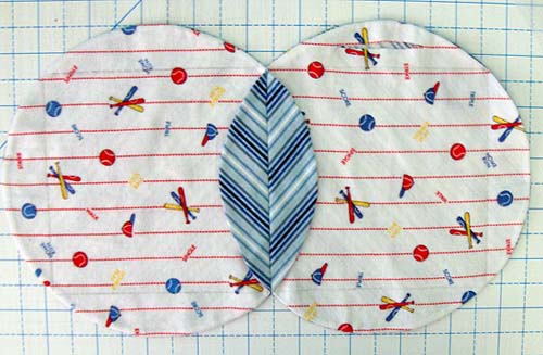 Join two circles, matching up the straight lines and sew along that line. Then open out the circles.