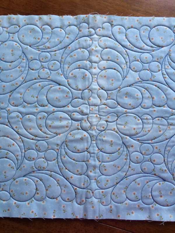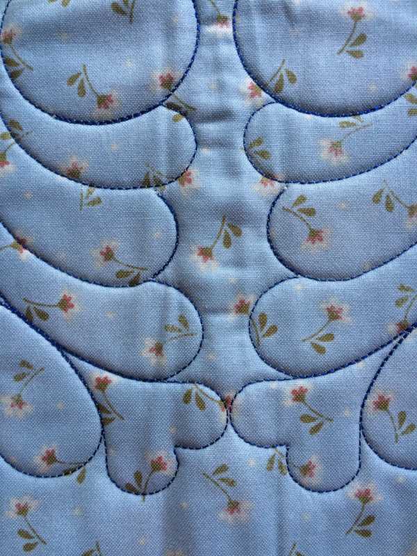 My new toy has a computer. The design was done by the machine, after I altered it to fit the space I wanted it in. So it is much like an embroidery machine's ability. My FMQ hasn't been practiced on a longarm for over two years so that'll take time to get back in the grove.