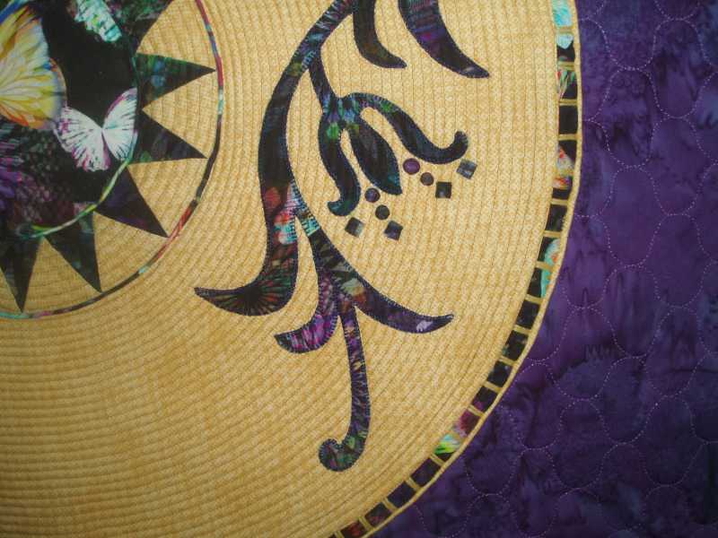 So, here it is: Memories of Sardegna--I spent part of my childhood in Sardegna, Italy, as well as a couple of years there about 30 years later and was always surrounded by Sardinian crafts--baskets, woven linens, carved furniture and wrought iron pieces. So my quilt is a Sardinian basket from a town about an hour away from where I grew up. It's actually a tray, rather than a bowl.