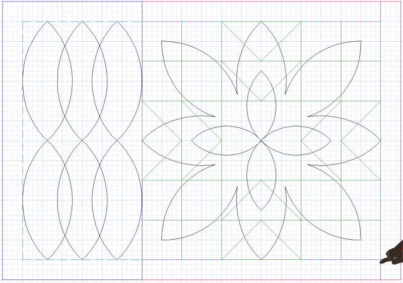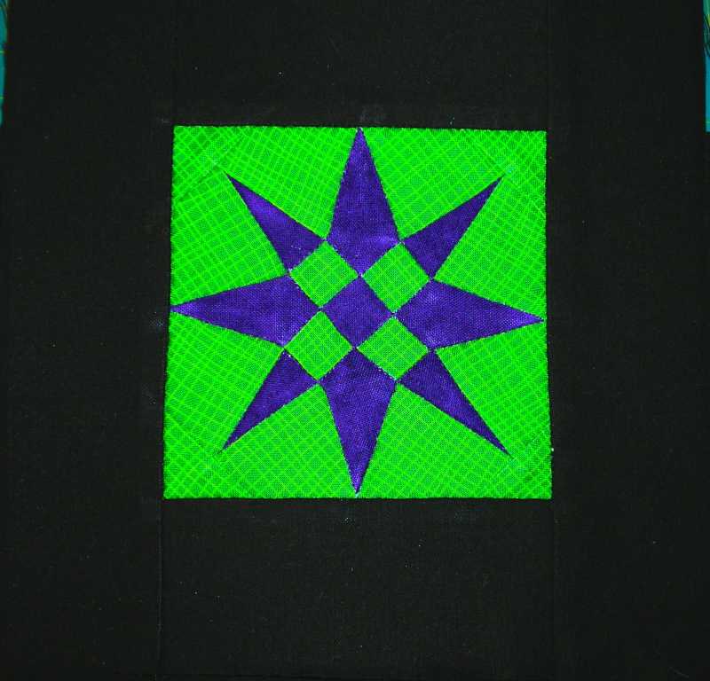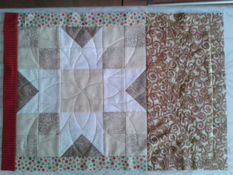 Here are the two sides and I am happy with the "flower" over the star block but not with the feather in the open space. It is too free form to go with the structured quilting. I'm not going to fill in any of the arcs - far too many thick seams to try adding more quilting. I carefully planned the arcs so I did not have to quilt through any intersections in the block.