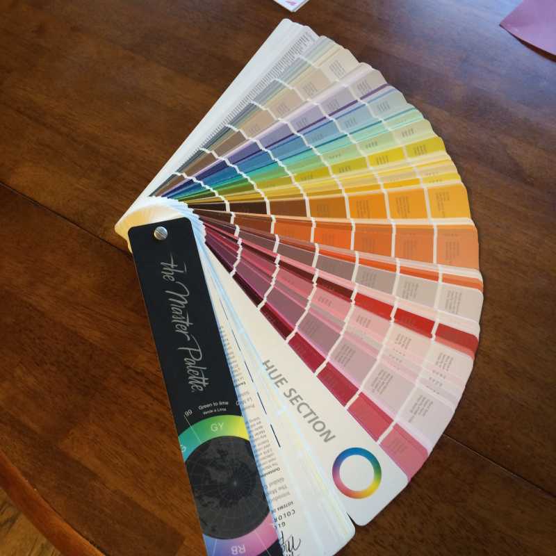 I just returned from a trip down a dark, sinister road! We went to Home Depot, I got lost in the paint dept., finally found all of what I otherwise needed, purchased NO paint, but made a terrific connection. She gave me a Master Palette of paint chips for the Glidden brand of paint.