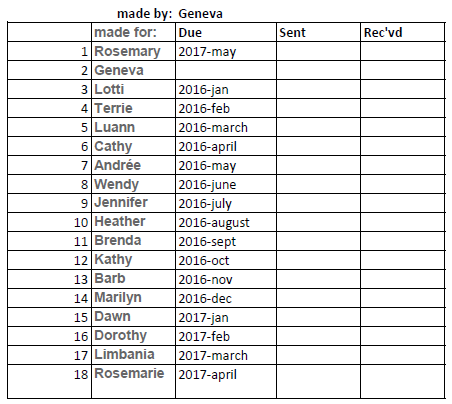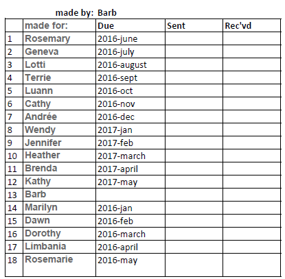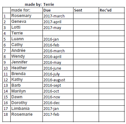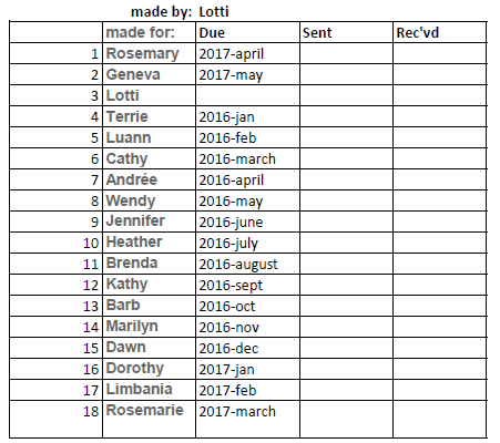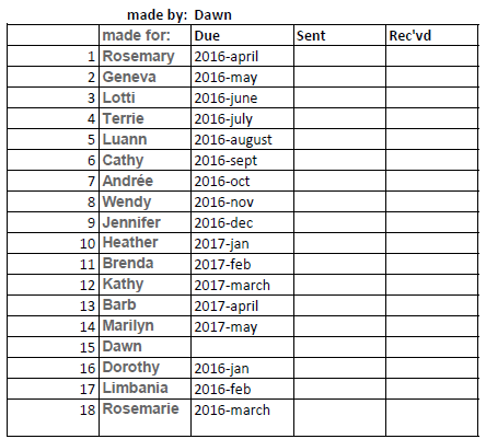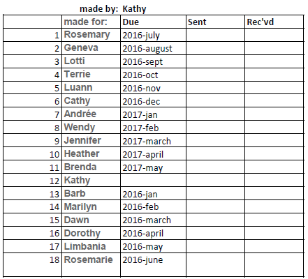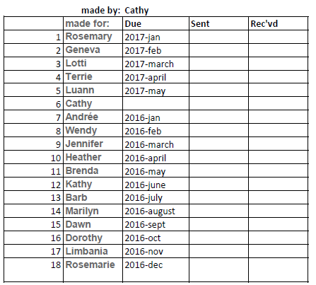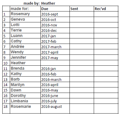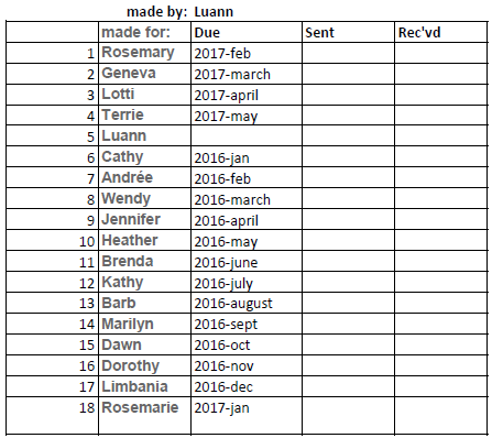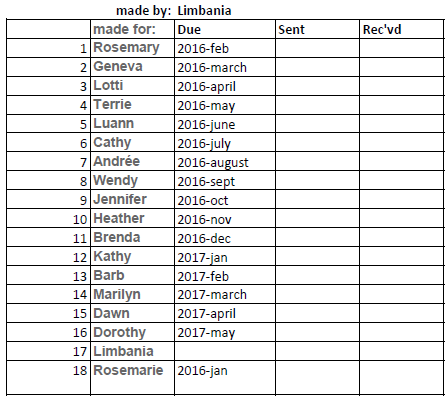 As I understand the rules - as long as the piece measures 36.5" long by 6.5" wide (although the width can be varied for some) it should be good to go in the post. As far as I can tell, the technique is up to the maker, who (hopefully) will follow the design brief - if there is one. Otherwise, do what you fancy for the receipent. However if life gets in the way for any particular month, Lottie suggested that rather than fret about it, a specially chosen strip of fabric would be equally acceptable. Just let everyone in the team know if you need to rest on you oars at any time.