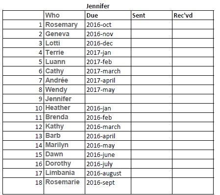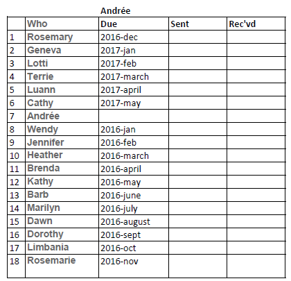 But need to have a little think as I believe I can integrate the full 'schedule' for all of us - but want to keep it simple and clear ...