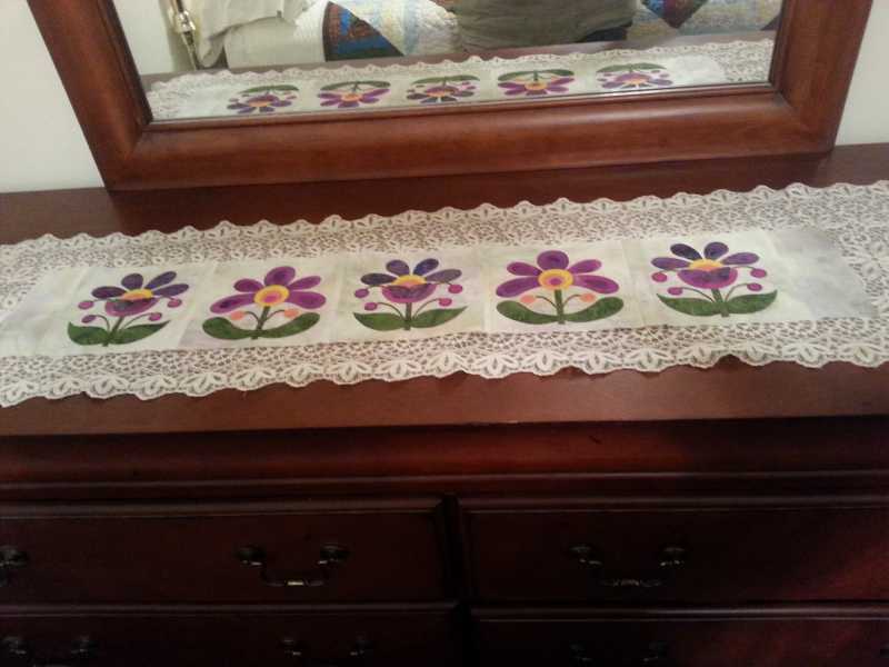 Dorothy, I'm so glad you love it! And, it looks so sweet on your dresser runner! I'm glad it found you since I didn't know to put the unit number on the address. (Did I miss that?) I would have been so sad if it had gotten lost.