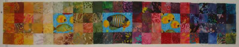 Unfortunately I am completely stymied as to how to use Luann's lovely FQ, as it really does not want to be cut up to fit anywhere on this