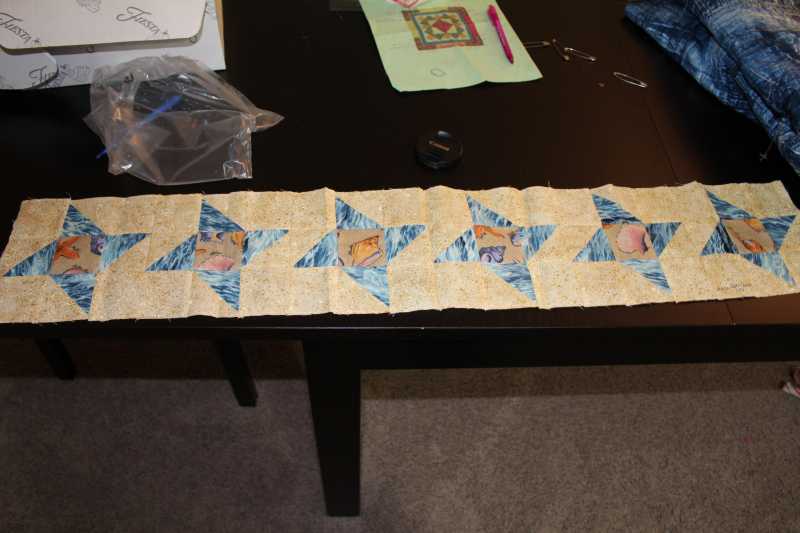Here's the row I received from Geneva - beautiful stars with seashell fabric in the center!
