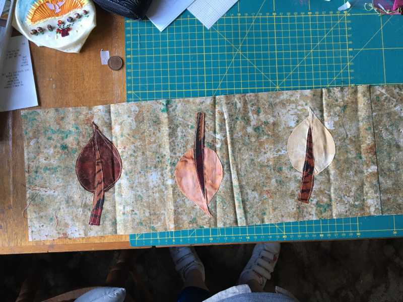 by midnight33I’m jumping ahead a bit....made brown fusible bias for tree trunks & now experimenting with dif shapes & fabrics...1 Photo