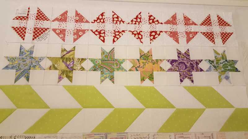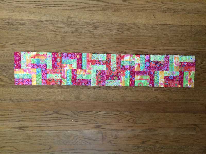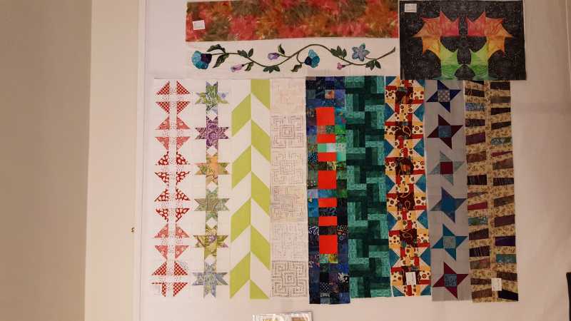 Geneva, send it as a row. I am still undecided as to which two rows will be split to make the front sleeves. Because I received fabric from Terrie and Rosemarie I can make the smaller borders that I need from their pieces (still undecided about Luann's panel, too nice to cut up!)